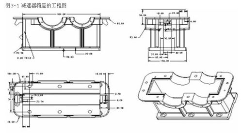 對于減速器箱座的工程圖,一般情況下需繪制各個零件的平面視圖,部件裝配體的平面視圖,總裝配體的平面視圖。這里僅以箱座零件圖作為示例,給出它的示例如圖3-1所示。