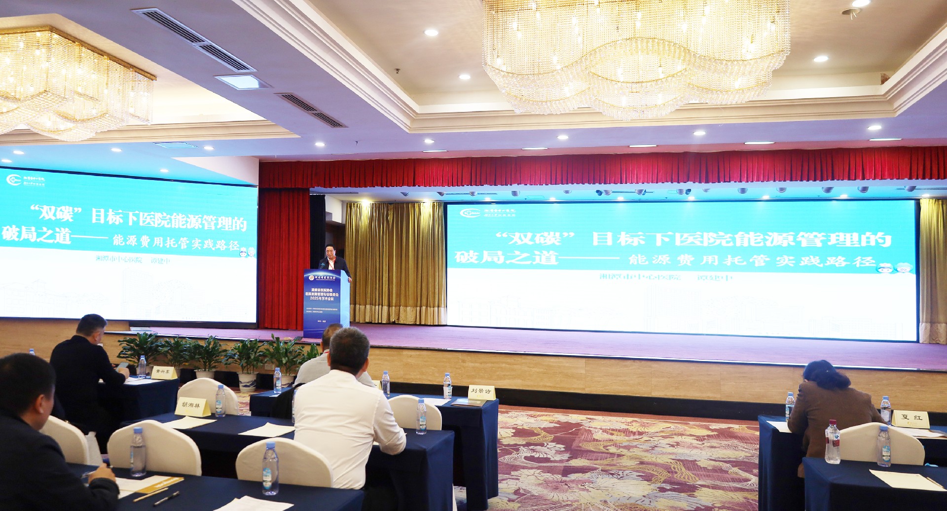 會議上,湘潭市中心醫(yī)院譚院長在開場致辭中多次對我司前期改造效果給予高度評價。在主題演講環(huán)節(jié),他立足醫(yī)院管理者的實際需求,以《雙碳目標(biāo)下醫(yī)院能源托管的破局之道——能源費用托管實踐路徑》為題,從業(yè)主視角闡釋了能源托管模式在提升能效、優(yōu)化成本方面的實施路徑,為醫(yī)院后勤綠色轉(zhuǎn)型提供了可借鑒的實踐樣本。