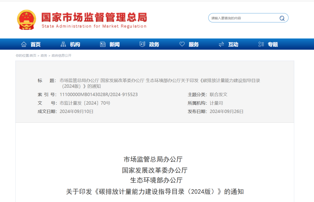 三部門發(fā)布《碳排放計量能力建設(shè)指導(dǎo)目錄(2024版)》